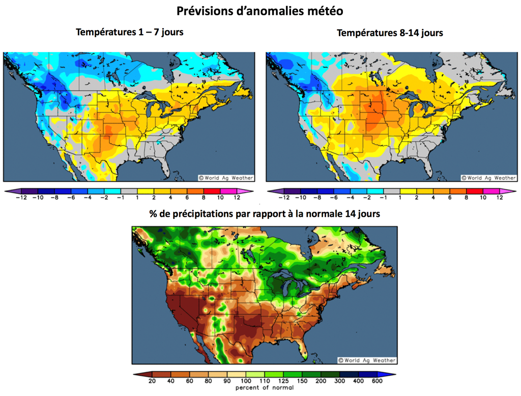 Le rapport des engagements des spéculateurs et négociants de ce vendredi a indiqué que les spéculateurs à Chicago ont réduit leur position nette achetée dans le marché du blé de 6 136 contrats en date de mardi dernier à 60 812 contrats. Ils ont par contre ajouté 1 721 contrats à leur position nette à Kansas à un total acheté de 64 373. Il s’agit de la plus importante position nette achetée des spéculateurs à Kansas depuis juillet 2017.