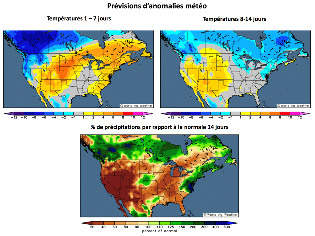 Pour le rapport de l’offre et de la demande (WASDE) qui sera présenté ce mercredi, les analystes s’attendent à une réduction des inventaires de maïs US de l’ancienne récolte à 2,021 milliards de boisseaux. Dans le cas de la nouvelle, les stocks pourraient être de 1 639 milliards de boisseaux, une baisse de 55 millions de boisseaux qui devrait être aidée notamment par une réduction de la production de maïs américain.