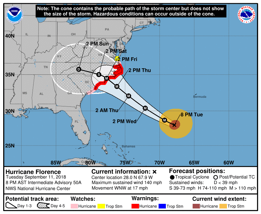 L'Ouragan Florence qui devrait frapper la côte est américaine ce jeudi/vendredi