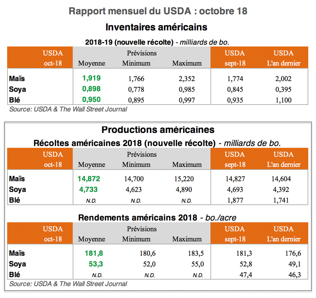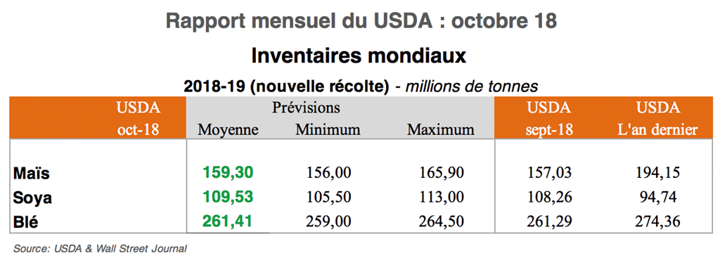 Pour accéder au rapport complet du USDA lors de sa publication (en anglais): WASDE Octobre 18
