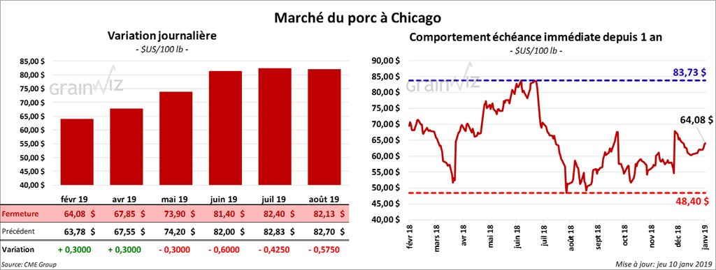 Les contrats de porc à Chicago ont fini la journée sur une note partagée. Celui de février 19 a progressé de 30 cents.