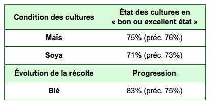 - Les résultats des conditions des cultures du USDA