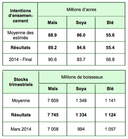 Dans cette édition : Résultats – Stocks trimestriels et intentions d’ensemencement