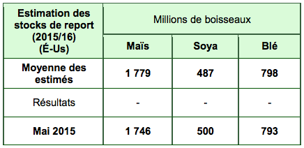- WASDE – Stocks de report 2015-2016