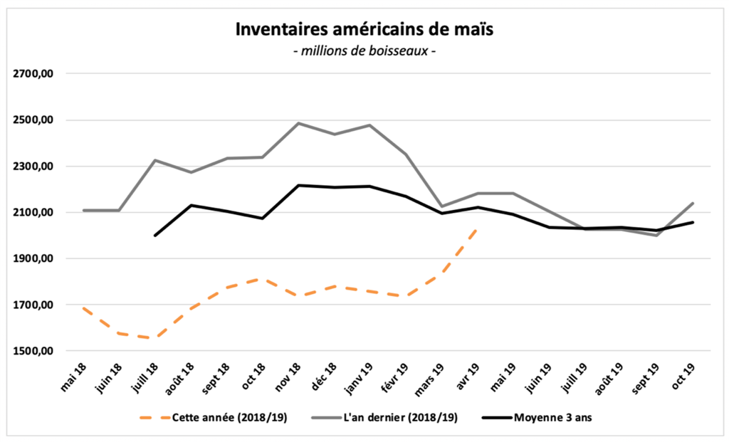 Avec la réduction de la demande de maïs américain qui se poursuit aux États-Unis, les stocks américains de maïs sont maintenant pratiquement comparables à l'an dernier.
