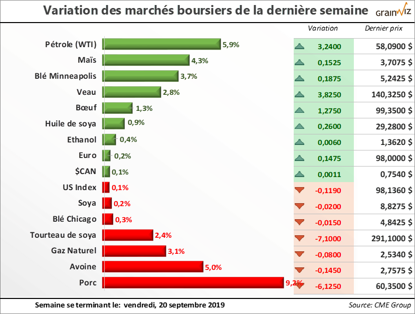 La dernière semaine aura... Pour en savoir plus sur la situation actuelle et la tendance des marchés des grains et des viandes au Québec, lisez la suite dans la dernière édition du 23 septembre 2019 de la lettre financière.