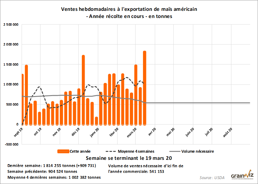 Forte hausse des ventes hebdomadaires à l'exportation de maïs américain alors que la Chine semble de retour dans le marché américain.