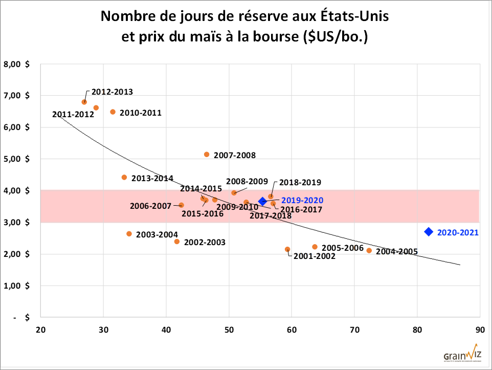 Aux États-Unis, les premières prévisions du USDA pour la prochaine année font bondir le nombre de jours de réserve à plus de 80 jours. Si ces chiffres se confirment au fil des mois, il sera alors très difficile d'envisager un marché à Chicago a beaucoup plus de 3,00-3,50 $US/bo..