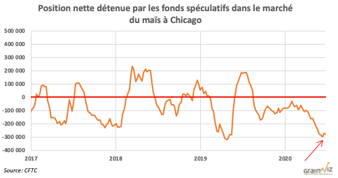 Les spéculateurs demeurent très investis à la baisse dans le marché à Chicago. Tout stress météo plus tard en juillet pourrait encore faire bondir les prix. Mais, avec le revers de la dernière semaine, le spectre d'un passage sous 3,00 $US/bo. a de nouveau refait surface...