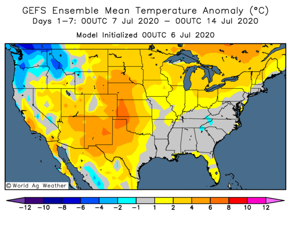 Aux États-Unis, les marchés sont maintenant très attentifs aux conditions météo avec des températures anormalement chaudes qui devraient affecter les cultures du Midwest qui débute leur pollinisation.