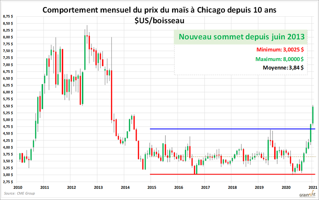 Nouveau sommet inégalé depuis juin 2013 pour le maïs à Chicago la semaine dernière, alors que la demande de maïs américain demeure très vigoureuse.