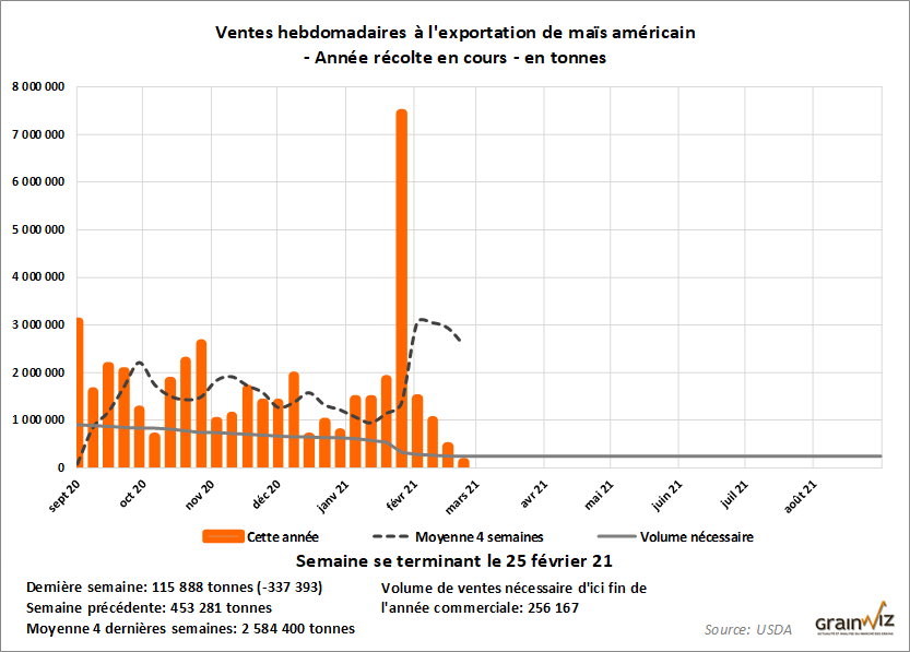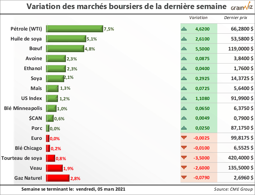 Plusieurs inconnus sont cependant en suspens du côté des exportations américaines de maïs. D'un... Pour en savoir plus sur la situation actuelle et la tendance des marchés des grains et des viandes au Québec, lisez la suite dans la dernière édition du 08 mars 2021 de la lettre financière.