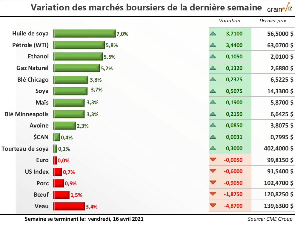À ce stade-ci, les conditions demeurent généralement favorables pour débuter la saison aux États-Unis. Par contre, les régions plus au nord du Midwest américain demeurent très sèches, avec encore peu de précipitations de prévues pour les deux prochaines semaines. Rappelons que si la demande de maïs demeure aussi vigoureuse l'an prochain, des excellents rendements demeurent nécessaires cette année pour éviter... Pour en savoir plus sur la situation actuelle et la tendance des marchés des grains et des viandes au Québec, lisez la suite dans la dernière édition du 19 avril 2021 de la lettre financière.