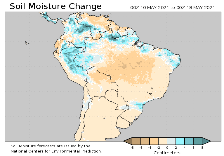 Au Brésil, on ne prévoit toujours pas de précipitations importantes au cours des deux prochaines semaines.