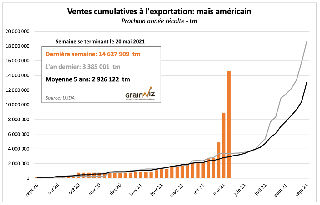 3e semaine de fortes ventes à l'exportation de maïs américain à destination de la Chine pour la prochaine récolte.