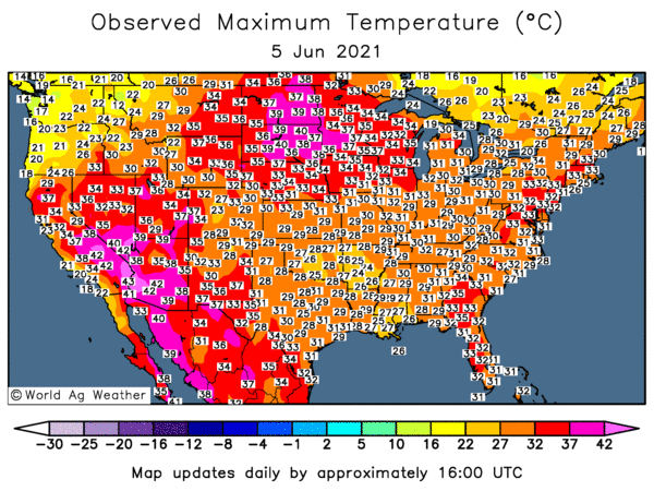 Aux États-Unis, l'état des cultures de maïs débute la saison en force, à 76% dans les catégories "bon à excellent". Par contre, avec un état des cultures aussi bon, et surtout, des prévisions météo qui s'annoncent beaucoup plus chaudes et sèches au cours des prochaines semaines pour le Midwest, le risque de le voir reculer rapidement est significatif, ce qui ne devrait pas manquer de supporter avantageusement les prix.