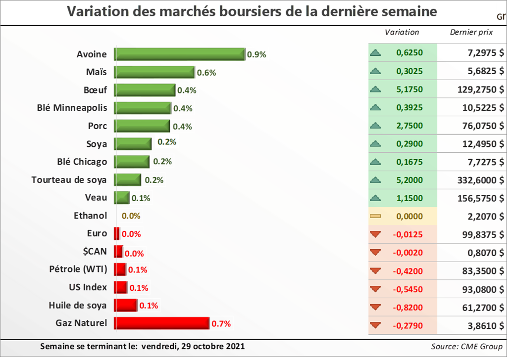Avec la hausse considérable du marché de l'énergie, les marges de profit des fabricants d'éthanol ont fortement progressé dans les dernières semaines, à leur plus haut depuis 2015... Pour en savoir plus sur la situation actuelle et la tendance des marchés des grains et des viandes au Québec, lisez la suite dans la dernière édition du 01 novembre 2021 de la lettre financière.