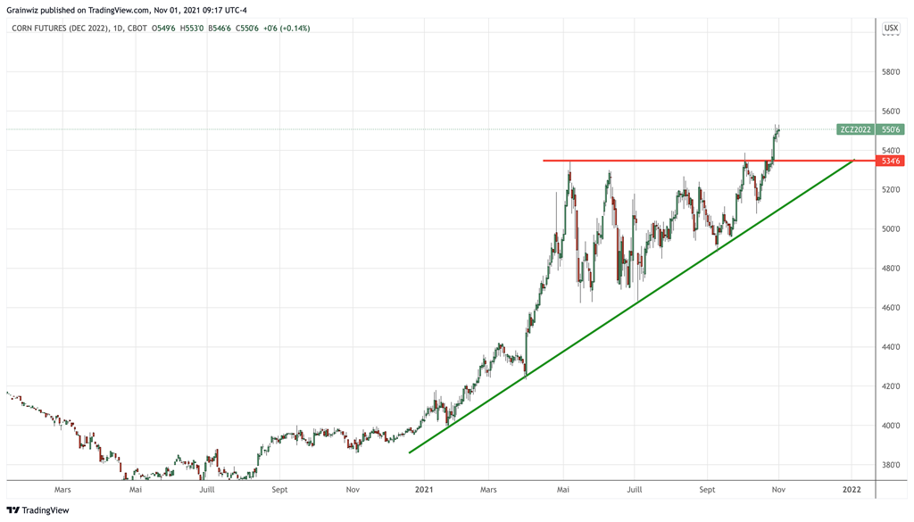 Maïs - Une nouvelle vague de rumeurs et spéculation aura permis au marché du maïs de bondir dans la dernière semaine à son plus haut depuis la mi-août dernier à Chicago. Ajoutant à la dimension positive de ce rebond, cette hausse aura permis la rupture de la tendance baissière qui avait pris forme en juin dernier.