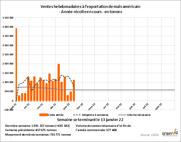Avec les moins bonnes récoltes sud-américaines, on commence à croire que les exportations américaines de maïs profiteront de la situation dans les prochains mois pour s'apprécier davantage.