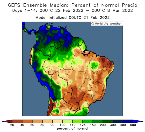 Au Brésil, le retour de précipitations dans le sud du pays, et de conditions plus sèches plus au nord devrait permettre d'accélérer les ensemencements de la 2e récolte dans de meilleures conditions.