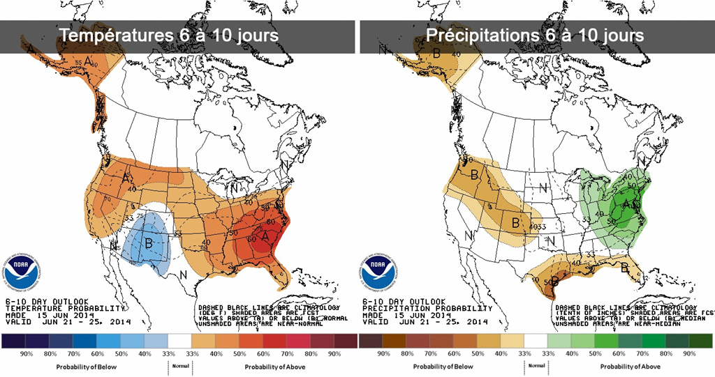 Météo - Les prévisions 6 à 10 jours sont un peu plus chaudes et sèches que prévues la semaine dernière. Il ne reste déjà plus que quelques semaines avant le début de la pollinisation aux États-Unis et certains joueurs pourraient commencer à s'inquiéter des coups de chaleur de juillet.