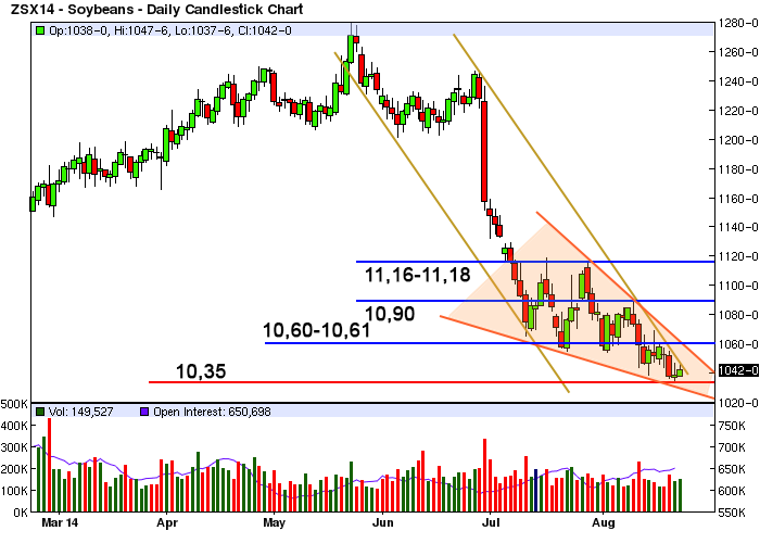 À quelques semaines, voire même jours, de la récolte de soya qui devrait débuter dans le sud des États-Unis, le soya se fait très rare en sol américain, propulsant les prix à des sommets. Mais, l'imposante récolte en vue cette année menace toujours et plusieurs analystes gardent en tête un objectif sous 10 $US/boisseau.