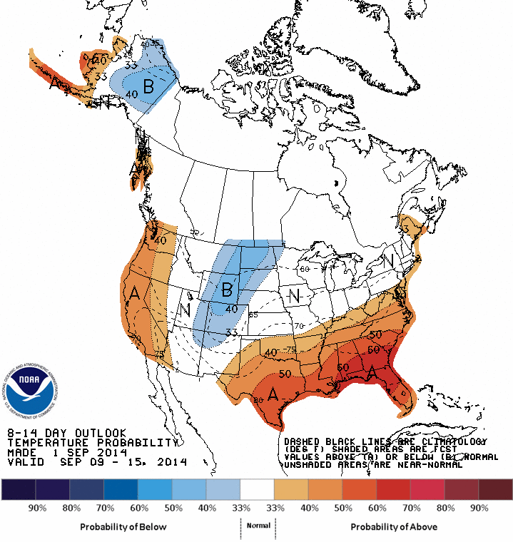 Météo - Météo - Les dernières prévisions proposent des températures dans les normales à plus fraîches pour la 1er moitié de septembre, ce qui pourrait susciter certaines inquiétudes de risques de gelés hâtives. Des précipitations au-dessus des normales sont aussi prévues pour cette période, ce qui pourrait retarder le début des récoltes américaines.