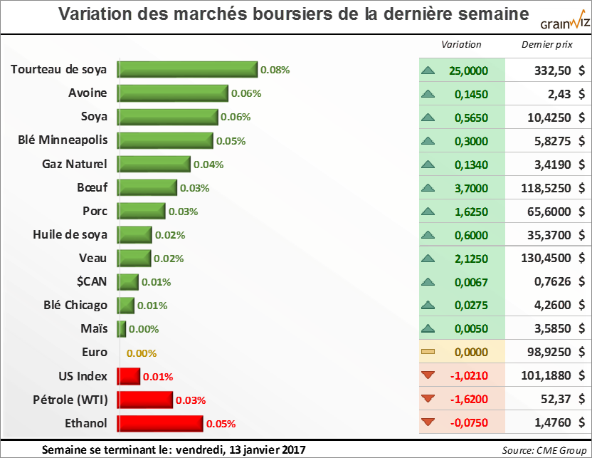 Pour les prochaines semaines, la grande nervosité des marchés se porte maintenant vers l'Amérique du Sud... Pour en savoir plus sur la situation actuelle et la tendance des marchés des grains et des viandes au Québec, lisez la suite dans la dernière édition du 16 janvier 2017 de la lettre financière.