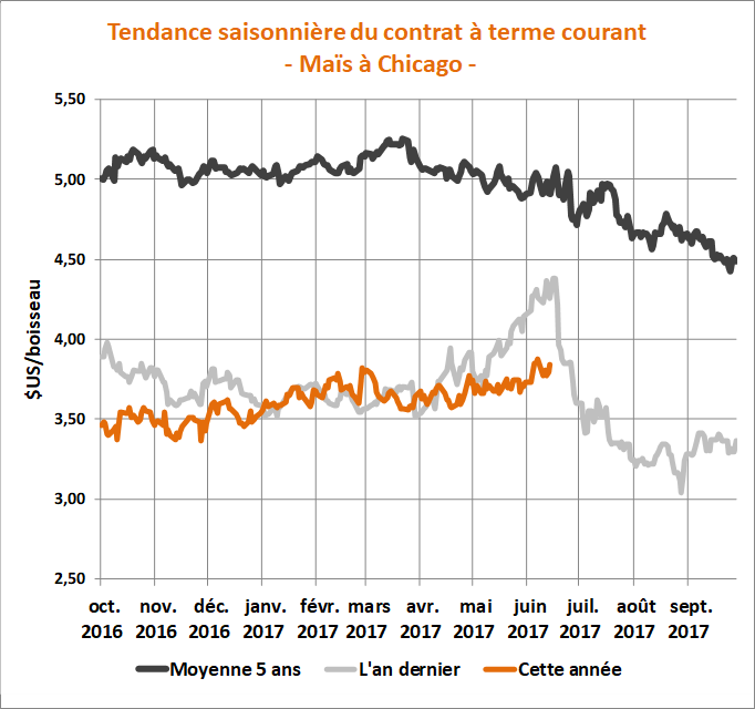 Il faut déjà se montrer plus prudent pour la suite des choses dans le marché du maïs à Chicago qui, selon la tendance saisonnière, devrait présentement atteindre un sommet définitif.
