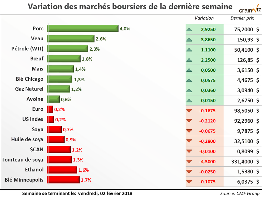 Enfin, avec la faiblesse persistant du prix du maïs des dernières semaines et un ratio soya/maïs toujours élevé, le sentiment que les producteurs américains sèmeront moins de maïs ce printemps fait du chemin.... Pour en savoir plus sur la situation actuelle et la tendance des marchés des grains et des viandes au Québec, lisez la suite dans la dernière édition du 05 février 2018 de la lettre financière.