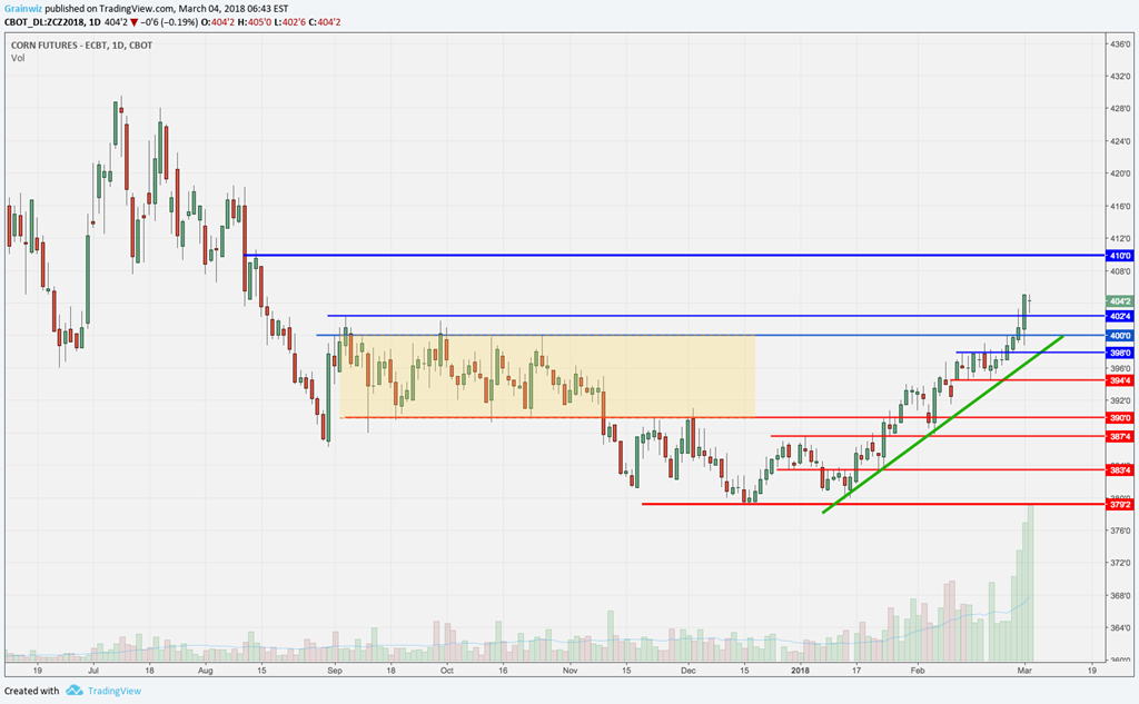Maïs - Après avoir hésité en début de semaine dernière face à de bonnes résistances à Chicago et une fin de mois de prises de profits des spéculateurs, le marché du maïs aura amorcé le mois de février en force. De nouveaux sommets intéressants ont été atteints, notamment sur l'échéance récolte qui sera finalement parvenu à clôturé au-dessus du niveau clé de 4,00 $US/boisseau.