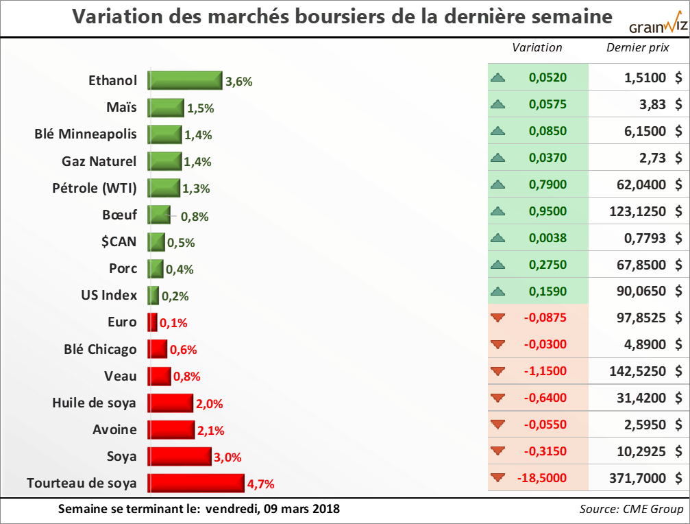 En Argentine, de bonnes précipitations sont maintenant attendues d'ici la fin de la semaine et sur un horizon de 8-14 jours. Bien entendu, le mal est fait et des pertes sont inévitables. Par contre, ces averses tirent un trait définitif sur... Pour en savoir plus sur la situation actuelle et la tendance des marchés des grains et des viandes au Québec, lisez la suite dans la dernière édition du 12 mars 2018 de la lettre financière.