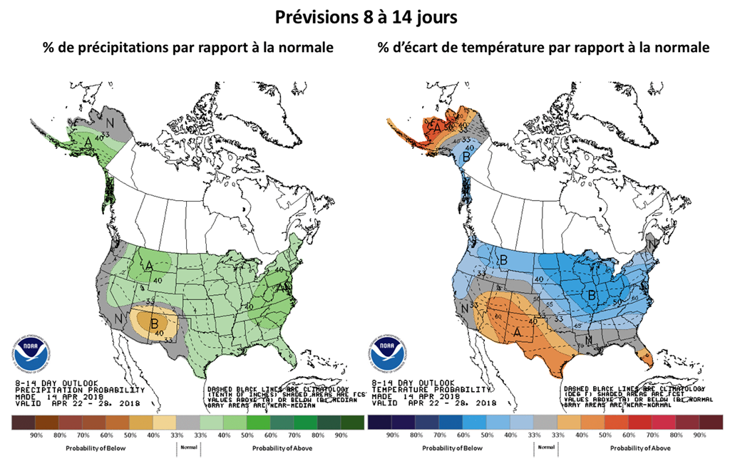 La fin du mois d'avril s'annonce toujours plus fraiche et humide qu'à la normale aux États-Unis, ce qui commence de plus en plus à préoccuper les marchés.