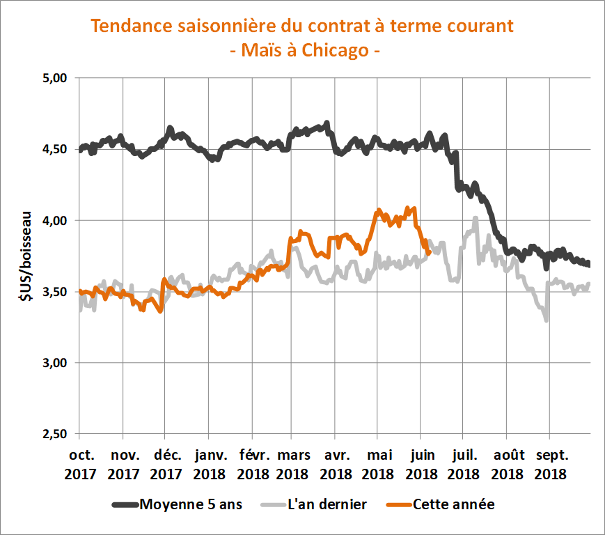 Avec les fonds spéculatifs qui étaient encore très investis dans le marché du maïs à la fin mai, on ne doit cependant s'étonner de la pression baissière particulièrement forte qui a animé les prix; leur nervosité face aux tensions commerciales américaines avec plusieurs pays... Pour en savoir plus sur la situation actuelle et la tendance des marchés des grains et des viandes au Québec, lisez la suite dans la dernière édition du 11 juin 2018 de la lettre financière.