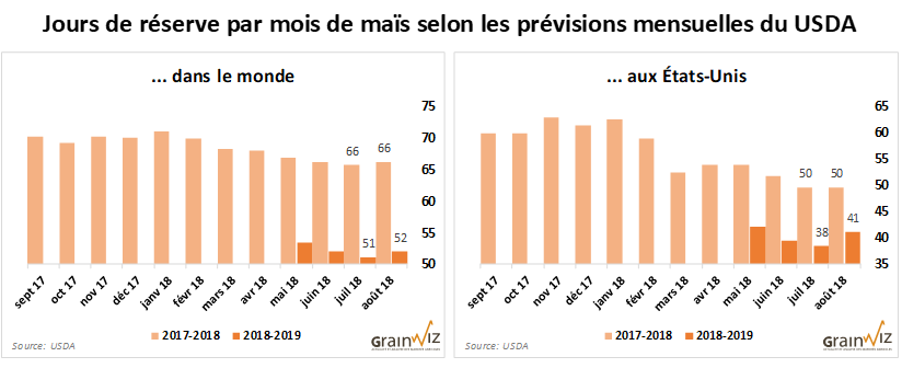 Fondamentalement, à moins que le rendement moyen américain n'augmente encore davantage d'ici les récoltes, on retient cependant des chiffres du USDA que les stocks, et surtout, les nombres de jours de réserve aux États-Unis et dans le monde afficheront toujours un bon...