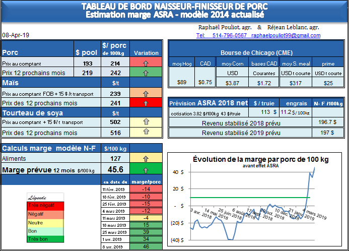 La marge des 12 prochains mois est de 46$ au-dessus du prix stabilisé, soit un revenu par porc de 100 kg de 242$.