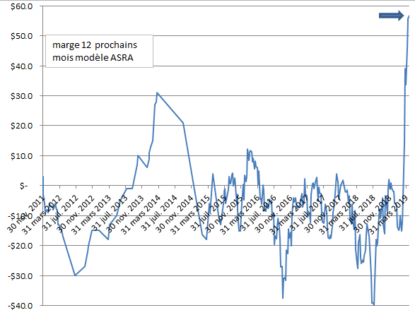 Pour mettre les choses en perspectives, la marge sur un 1 an à venir est bien plus grande présentement que la marge ayant pu être bookée à la bourse en 2014 lors de la DEP: