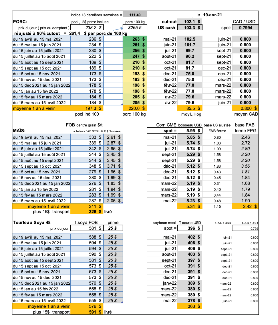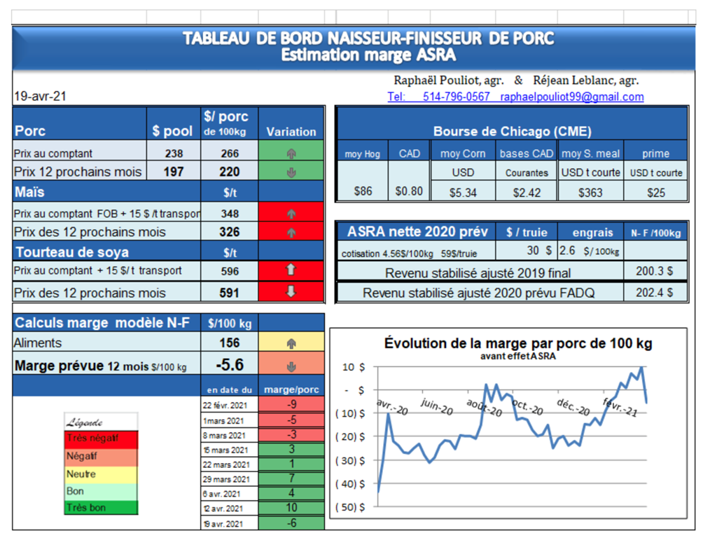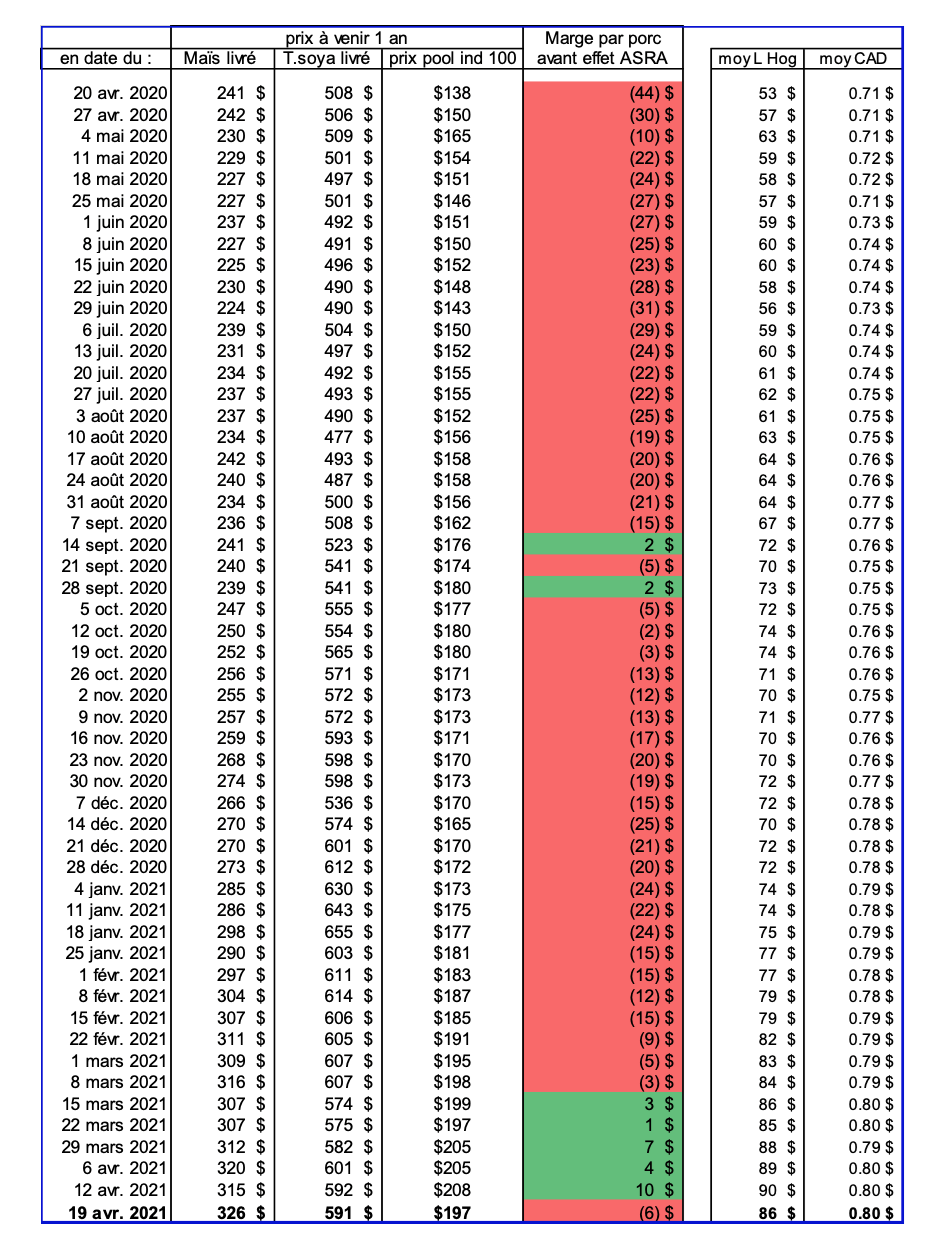 Après quelques semaines avec une marge 1 an positive, dont une semaine à 10 $/porc sur 1 an, nous sommes revenus en zone négative. Jusqu’en août la marge demeure positive, au-dessus de l’ASRA.