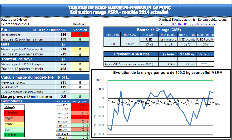 - Marge prévue 12 mois en baisse par rapport à la semaine dernière à 3,20 $/100 kg.