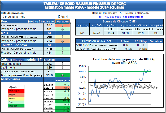 La marge est en légère baisse à +/- 11,3 $ par porc de 100 kg avant effet ASRA.
