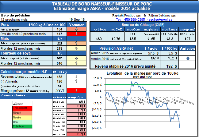 Cette semaine la marge par porc pour l’année à venir est toujours fortement à perte, un incroyable - 27 $ par porc ...