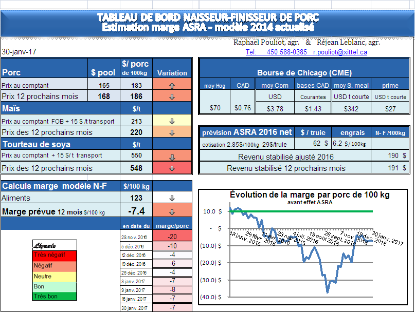 La marge par porc demeure donc négative à – 7,40 $/porc.