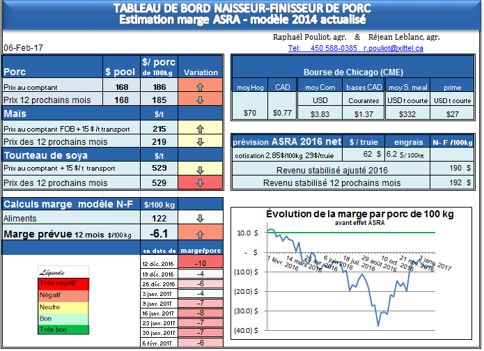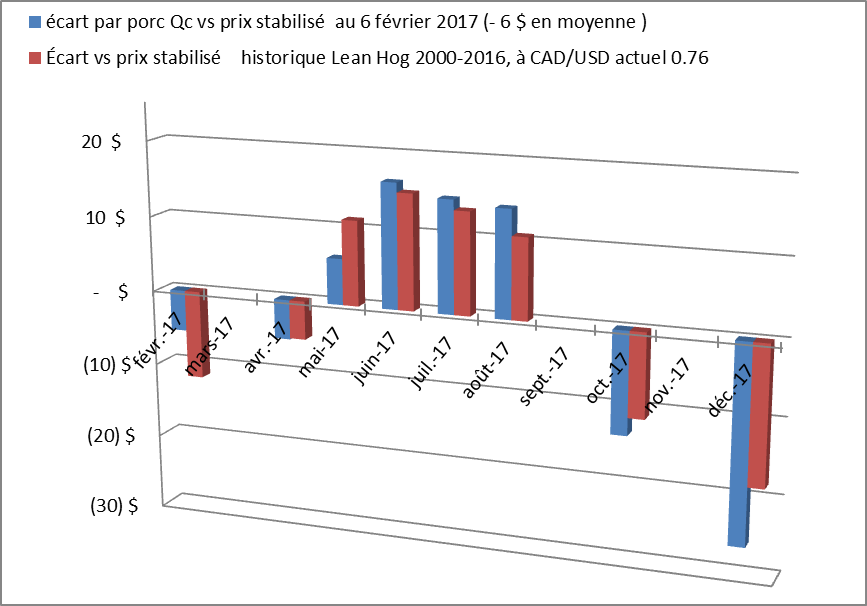 Ces montées de prix sont d’excellentes nouvelles, propulsées par le bon prix du bacon, mais avec l’effet du taux de change, l’ensemble des prix au Québec en dollar canadien demeure un peu plus bas ce que l’on avait comme prix offerts avant Noël et début janvier. Pour la plupart des contrats, les prix ont atteint leur moyenne historique, mais ne dépassent pas ces moyennes d’assez de dollar par porc pour prendre des protections. Gardons à l’esprit que nous sommes encore dans une zone de pertes, et non pas de bénéfices...