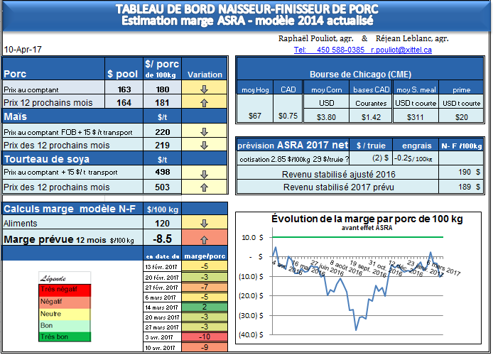Bon matin, aujourd’hui lundi 10 avril, la marge du modèle N-F pour les 12 prochains mois est de –8.50 $, un peu mieux donc que la semaine passée.