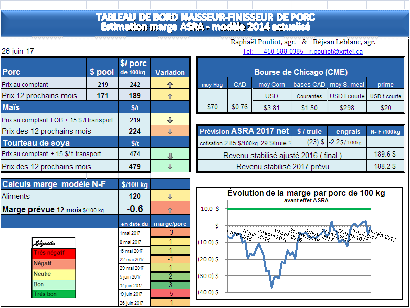 Nous avions estimé une compensation de 16,10 $/porc de 100 kg versus une compensation de 15,17 $/100 kg pour la FADQ.