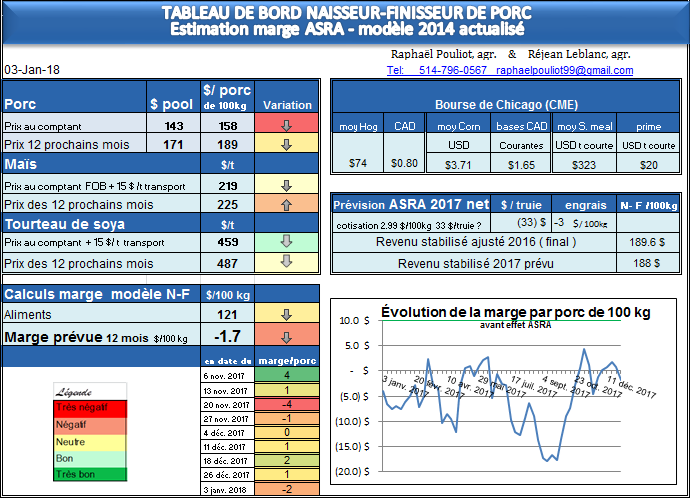 - La marge 1 an est maintenant négative à – 1,7 $/porc.