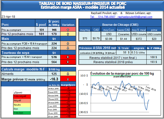 - La marge ASRA 1 an en continu est de – 16,30 $/porc.