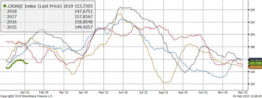 En ce qui attrait aux rapports USDA, le rapport Cattle-on-Feed du mois de janvier sera publié le 22 février (au lieu du 25 janvier) et celui du mois de février sera publié le 8 mars (au lieu du 22 février). Pour le rapport biannuel du cheptel bovin américain, l’USDA reporte sa publication au 28 février (au lieu du 31 janvier). Notez que ces dates sont après le 15 février, la date limite de la pause de 3 semaines au shutdown, il faudra donc que le gouvernement américain trouve une solution avec Trump pour le financement de son mur pour espérer voir ces rapports (ce qui n’est pas chose faite!).