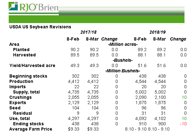 Le rapport offre-demande de mars n’est habituellement pas un rapport qui fait bouger les prix outre mesure. C’est un petite mise à jour sur les perspectives d’ancienne récolte et tout ce qui a trait aux ensemencement sera publié dans quelques semaines.