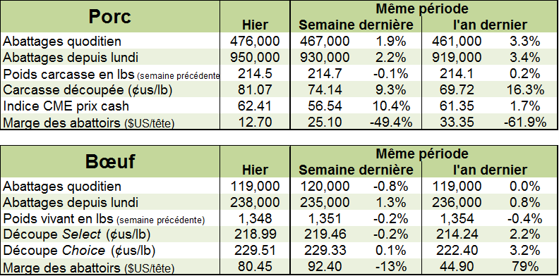 Ainsi ce rapport sera très intéressant afin de constater si les producteurs voudront augmenter considérablement la production pour les prochains mois afin de profiter des prix exceptionnels offerts par les marchés présentement. Ou pourront-il encore cacher les augmentations futures de production en « oubliant délibérément » de les noter dans le sondage du USDA. Ces pieux mensonges ne seraient pas une première dans les annales de l’USDA. Lors de la publication du rapport de décembre dernier, les producteurs avaient mentionné que la production augmenterait de 1 à 3% pendant la période du premier trimestre de 2019 (Janvier à Mars 2019). Or dans les faits, les abattages se sont situés en moyenne au-dessus de 5% pendant presque toute la période! C’est une disparité importante.